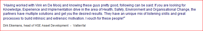 | Brabants Nieuwsblad De Stem "Shell: idiotproof, niet perfect" "Het enige wat je kunt doen is elkaar voortdurend scherp houden" aldus Karel de Mooij > lees verder |