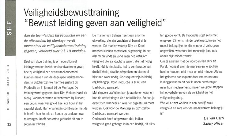 | Veiligheidsbewusttraining "Bewust leiding geven aan veiligheid." Lia van Osch - Safety officer - Heras > lees verder |