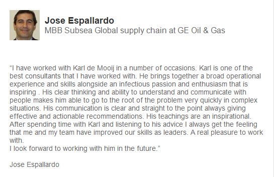 | "He brings together a broad operational experiance and skills alongside an infectius and ethusiasm that is insiring." Jose Espallardo - MBB Subsea Global supply chain at GE Oil & Gas > lees verder |